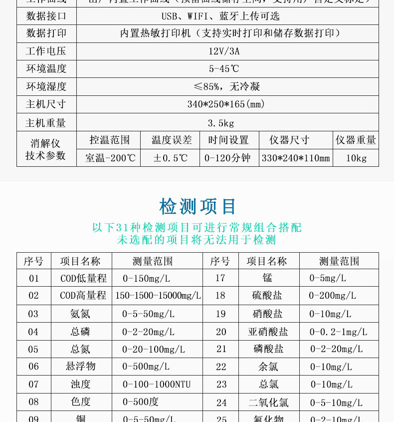 RB-700S型多参数水质检测仪(配30孔双温区消解仪)